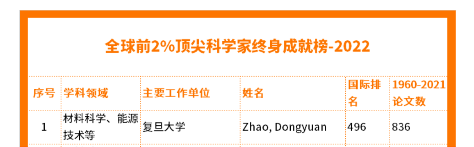 全球前2%顶尖科学家榜单由斯坦福大学John P.A. Ioannidis教授及其团队发布。榜单基于爱思唯尔Scopus数据库,以被引数、H指数、HM因子等6种综合指标,从近700万名研究人员中遴选出世界排名前2%的学者,分为“生涯影响力”(career-long impact)和“年度影响力”(single recent year impact)两个榜单,提供客观真实反映研究人员的长期和最近年度科研表现。