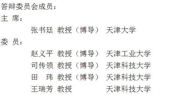 答辩地点:太阳成集团tyc122cc河西校区21号楼301会议室答辩题目:载体颗粒强化喷雾冷冻干燥过程机理研究