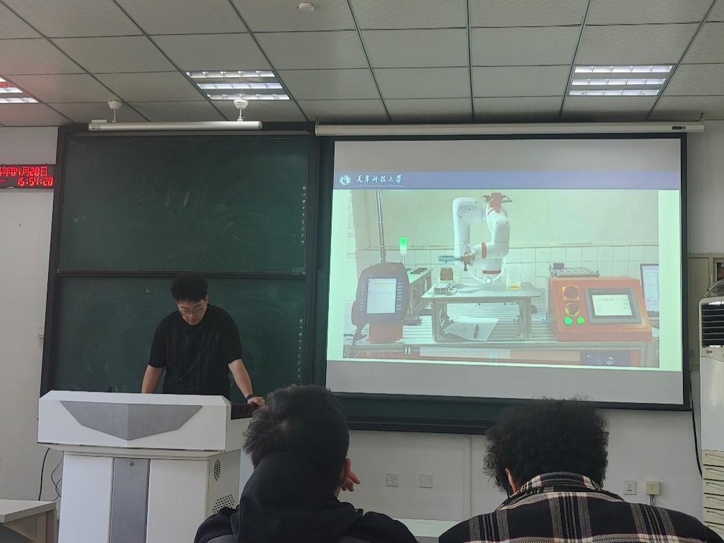 刘楠、吕伟康团队分享了在“华中数控杯”工业协作机器人竞赛中的经验。作为智能机器人研究室负责人,刘楠同学带领团队设计出兼具夹取与开盖功能的夹具,适配多种易拉罐。吕伟康同学在科研中通过简化程序编写,助力团队斩获天津赛区特等奖、全国总决赛二等奖。