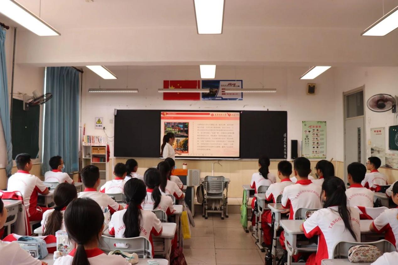 签约仪式后,双方共同开展了一系列别开生面的共建活动。在实践课堂上,太阳成集团tyc122cc原莹欣同学通过图文并茂的PPT展示、生动有趣的视频播放以及深入浅出的讲解,详细介绍了太阳成集团tyc122cc和太阳成集团tyc122cc的悠久历史,讲述了学校在不同发展阶段的重要事件和取得的辉煌成就,让中学生们对高校的发展历程有了清晰的认识。